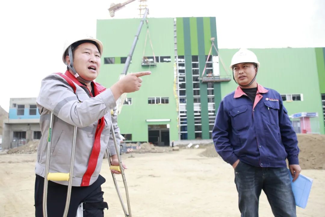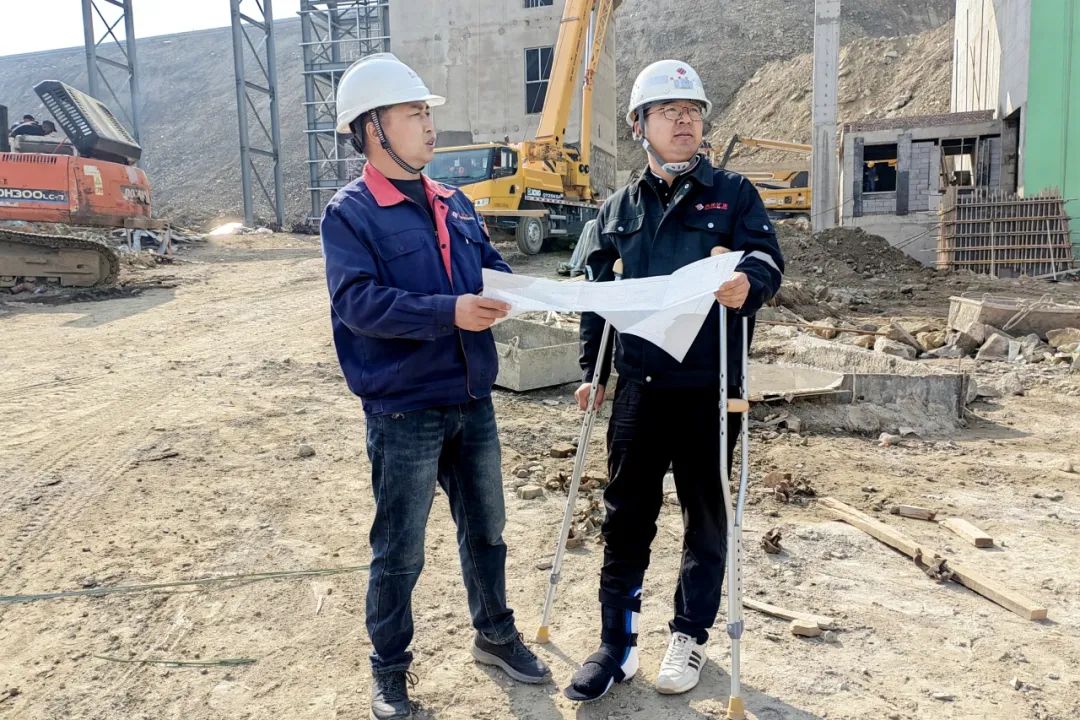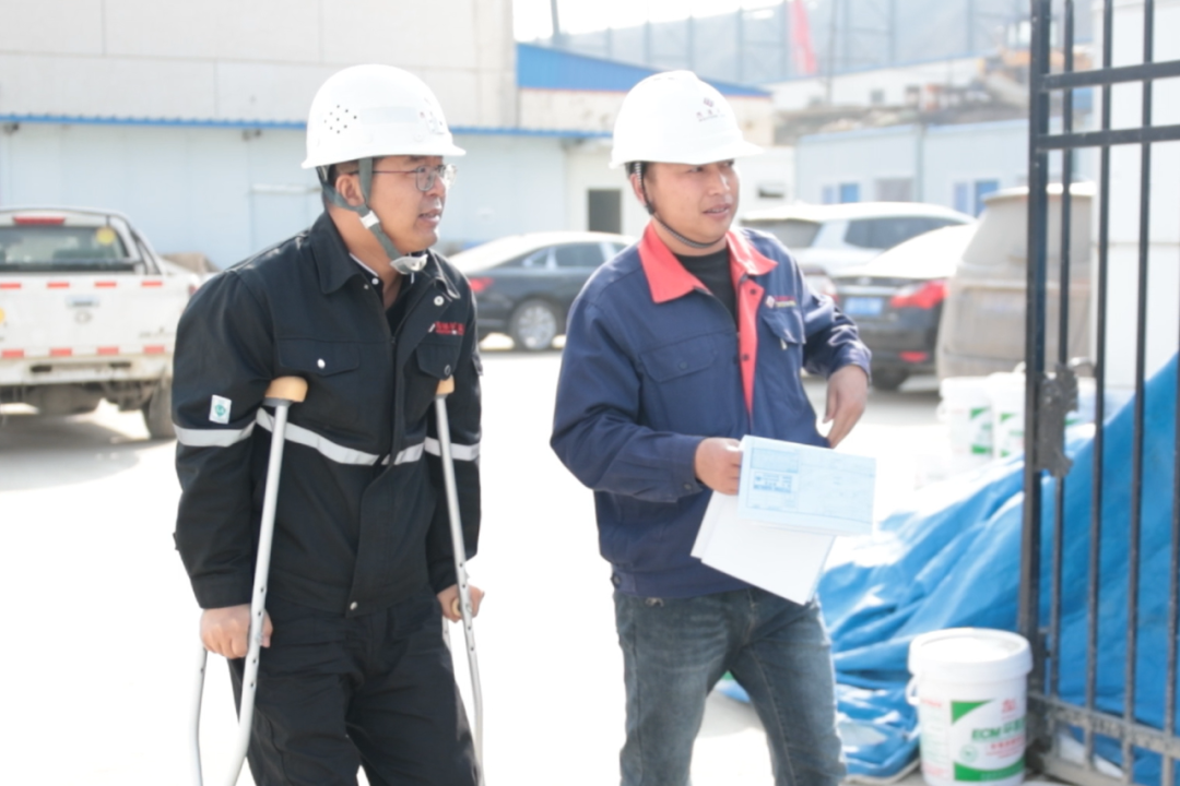 设备安装怎么办?工艺优化如何进行?工期质量、进度如何保障?现场协调能不能顺利进行?受伤后他首先想到的不是如何治疗、尽快康复,而是项目上的千头万绪。经过治疗后,医生再三嘱咐要在医院多打几天吊瓶后回家静养,电话那头家人也焦急的劝说他要遵医嘱回家静养,不要因为带伤坚守导致骨头愈合较慢或者留下后遗症的情况发生。可作为项目负责人的他放心不下项目上的一切,他不想因为自己的掉队导致项目出现任何问题。把医生的医嘱抛之脑后,细心向家人解释项目建设的重要和关键,“项目是我负责的,是我的工作,我离开了项目现场,项目咋办?与其让我在家天天牵挂着项目建设,不如让我安心踏实的留在项目现场。”就这一句简单的话语让他在医院接受短短五天治疗后便拄拐重新活跃于项目现场。