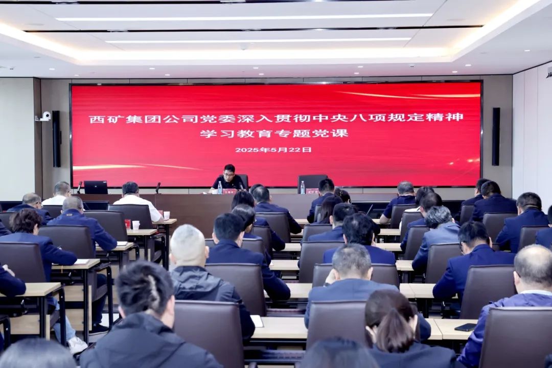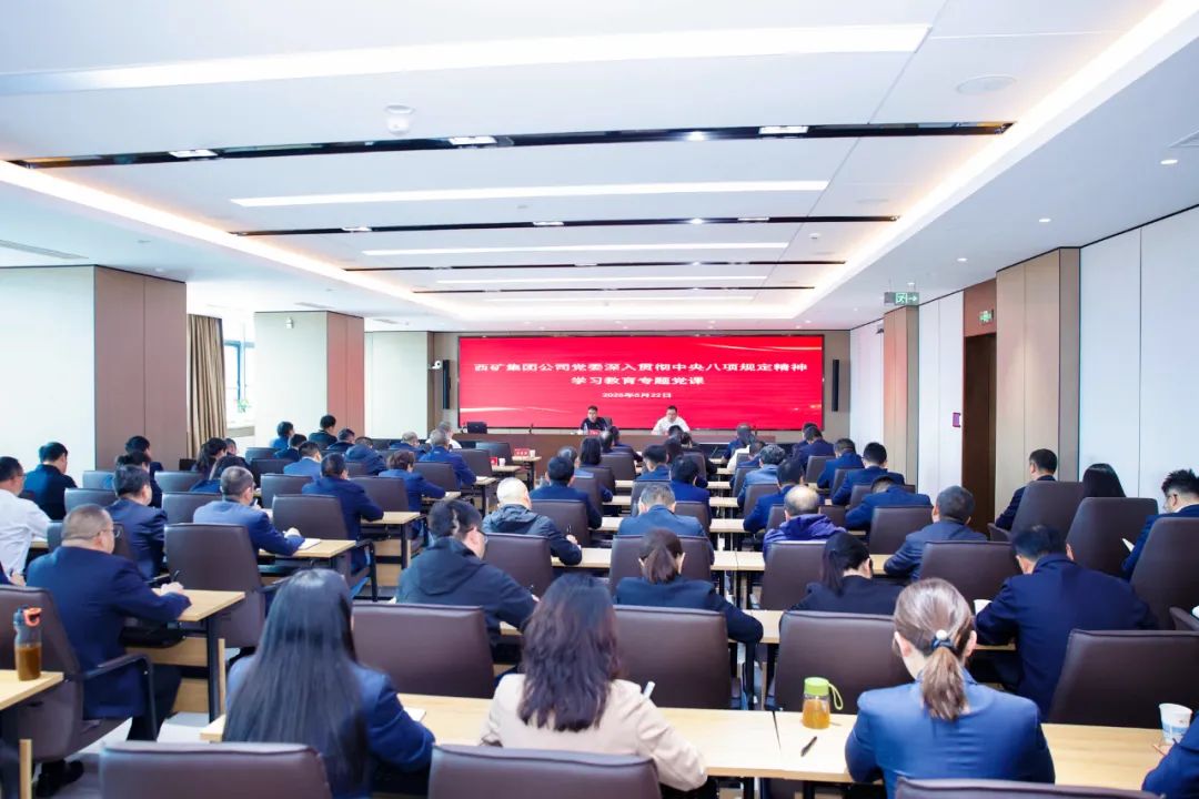 按照公司党委深入贯彻中央八项规定精神学习教育工作安排,5月22日,集团公司党委书记王海丰以《以作风建设铸魂 以使命担当砺志 实干争先推动西部矿业集团高质量发展》为题,为公司党员干部讲授专题党课,教育引导广大党员干部深刻认识中央八项规定精神的重大意义,强化党员干部纪律意识、规矩意识,聚焦公司“一稳五增两降四提升”工作主线主动担当作为,营造风清气正、干事创业良好氛围,为公司高质量发展凝聚强大合力。集团公司党委副书记吴世周主持。