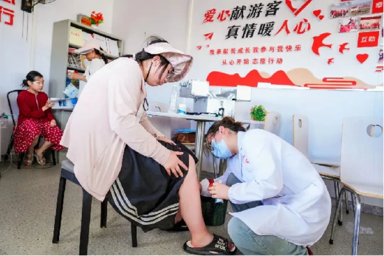 游客在综合服务站里接受暖心服务