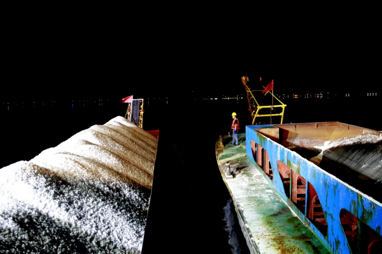 瀚海星河的见证下,巨大的盐船载起西矿人“吃盐饭”的发展梦,在广袤盐田里腾起巨浪、破浪前行。从白天的守护到夜晚的耕耘,他们让茶卡盐湖在两种身份里从容切换。当东方泛起鱼肚白,伴随他们身上的斑驳盐霜,身后的盐堆又高了一分,懂感恩、有情怀、重实干的西矿人正踩着盐粒铺就的大道感恩奋进、实干争先,每一粒盐都闪耀着奋斗的光芒。(来源:西部矿业集团)