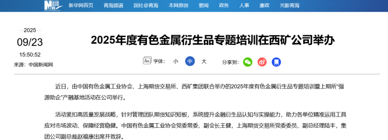 【新华网】2025年度有色金属衍生品专题培训在西矿公司举办