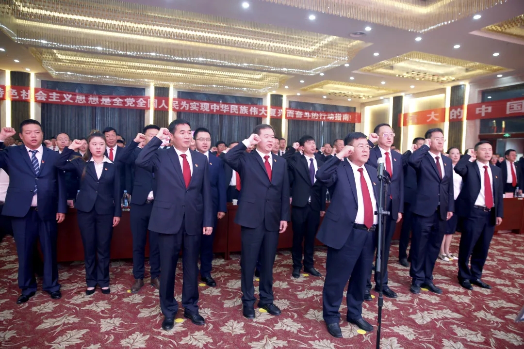 张永利带领新党员面对鲜红的党旗进行了庄严宣誓,全体参会党员同志集体重温入党誓词。通过庄重的宣誓仪式,让全体党员牢记共产党员的政治责任和历史使命,不断保持共产党员的先进性,切实发挥共产党员的模范作用,永葆共产党员的政治本色。