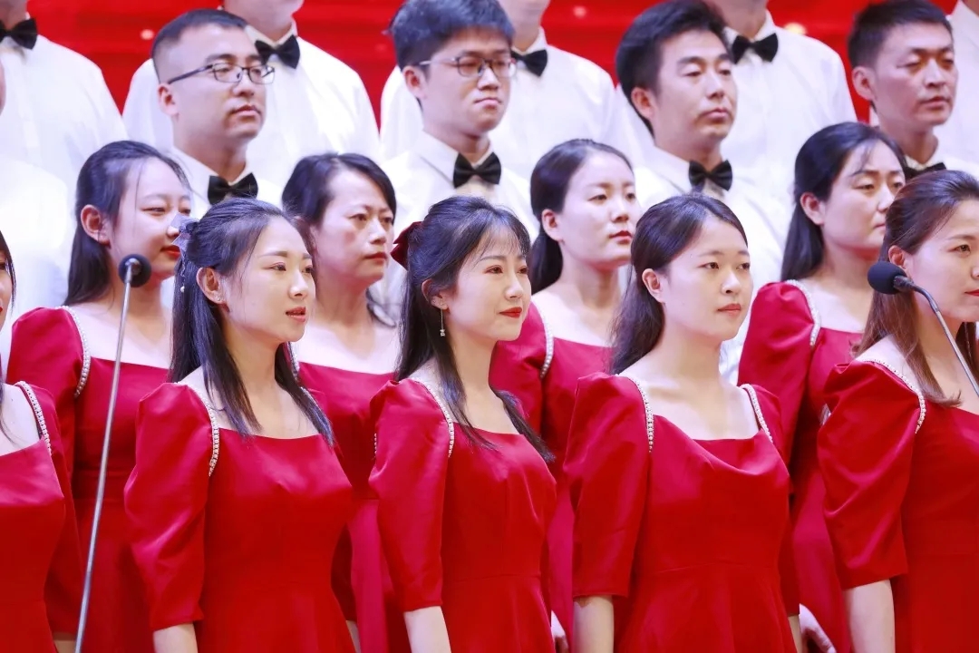 机关党委演唱大合唱《在灿烂阳光下》,鼓励公司全体党员肩负着振兴中华民族的使命,勇往直前,不懈奋斗。