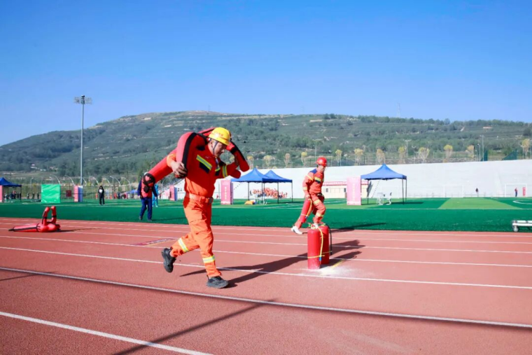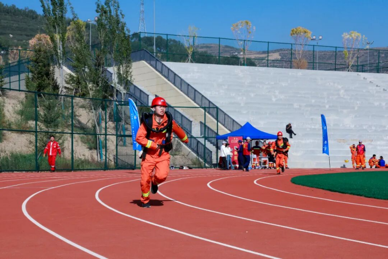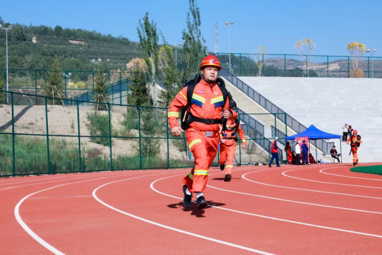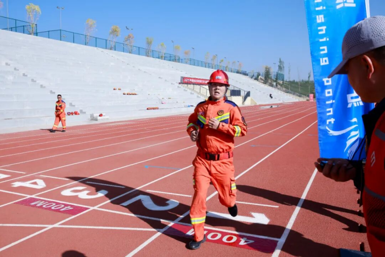 当天,竞赛现场气氛紧张而热烈,参赛选手们个个精神饱满,彰显着应急救援队伍的昂扬斗志和专业素养。理论知识考核环节,参赛人员沉着应战、认真答题,充分展现丰富的应急救援理论知识储备和沉着的应变能力。技能操作竞赛环节,参赛选手一刻不停,先佩戴氧气呼吸器完成100米跑,再肩扛30KG训练假人完成100米跑,然后双手各持8KG灭火器完成100米跑,最后完成100米综合障碍跑,力量、速度与灵敏完美结合;现场破拆时,当裁判鸣哨启动计时,参赛选手拿着木工手锯冲向10cm*10cm方木,用尽全力以最快速度将方木锯断,青筋凸起、大汗淋漓。