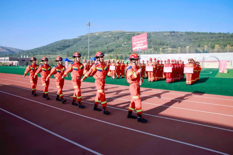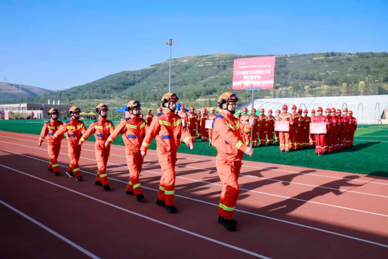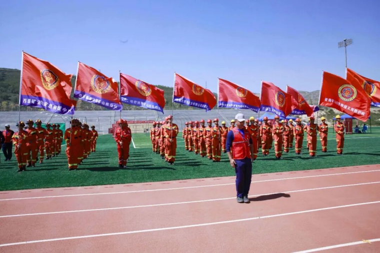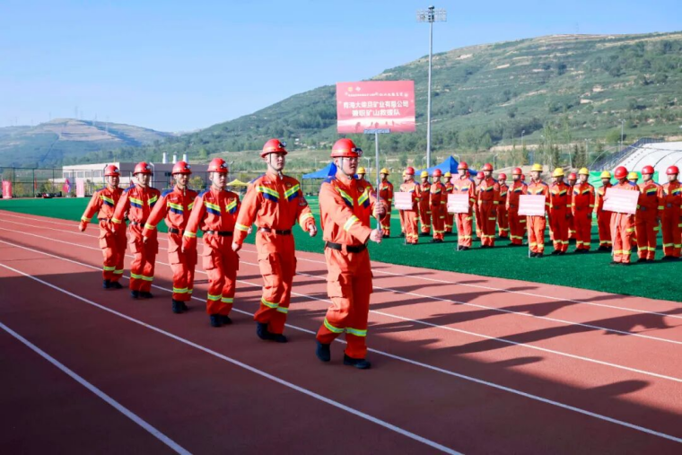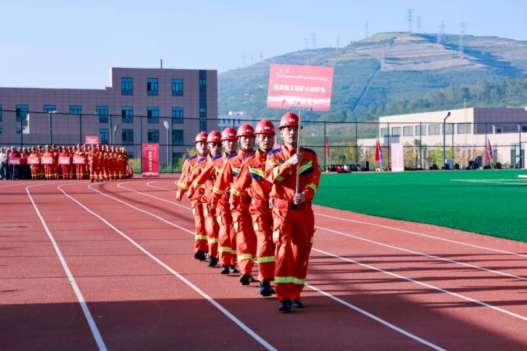 随着省能源化工机冶工会主席陈敬平宣布竞赛开幕,在《应急救援人之歌》激昂的旋律中,青海能源集团矿山应急救援大队、青海省义海矿山救护队、巴彦淖尔西部铜业有限公司矿山救护中队、西藏玉龙铜业矿山救援中队、肃北博伦矿业矿山救护中队、青海大柴旦矿业有限公司兼职矿山救援队、哈密博伦矿业有限责任公司兼职应急救援队、四川鑫源矿业有限责任公司兼职救护队、西部矿业股份有限公司矿山救援中队,及竞赛裁判员代表队、后勤服务代表队稳健步入会场,雄赳赳,气昂昂。